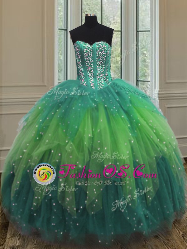 Sequins Floor Length Ball Gowns Sleeveless Multi-color Sweet 16 Quinceanera Dress Lace Up