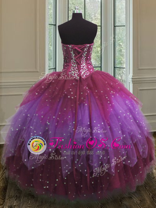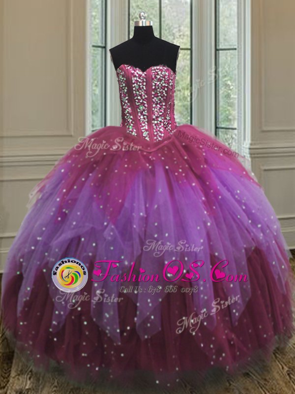 Pretty Multi-color Ball Gowns Sweetheart Sleeveless Tulle Floor Length Lace Up Beading and Ruffles and Sequins Sweet 16 Dresses