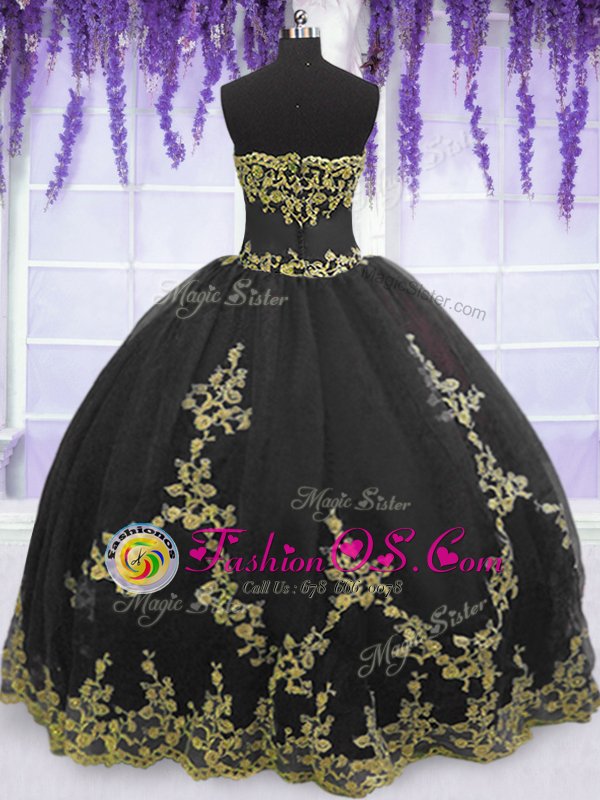 Floor Length Black Quinceanera Gown Tulle Sleeveless Appliques