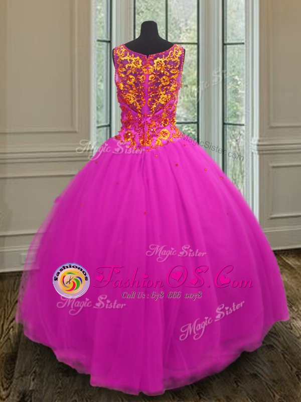 Fancy Beading Sweet 16 Dresses Fuchsia Zipper Sleeveless Floor Length