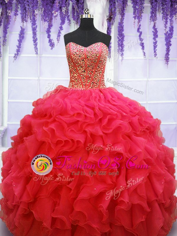 Organza Sleeveless Floor Length Quinceanera Dresses and Beading and Ruffles