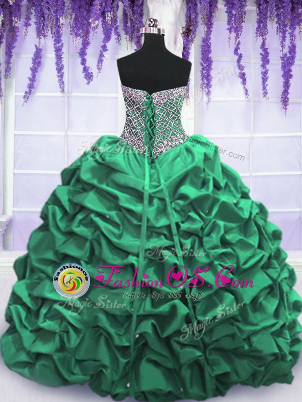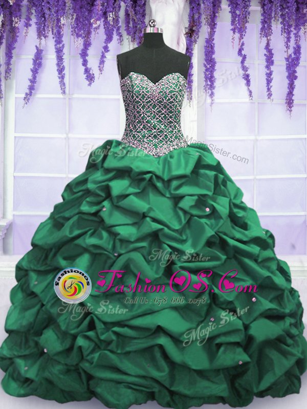 Captivating Floor Length Dark Green Quince Ball Gowns Taffeta Sleeveless Beading and Sequins and Pick Ups