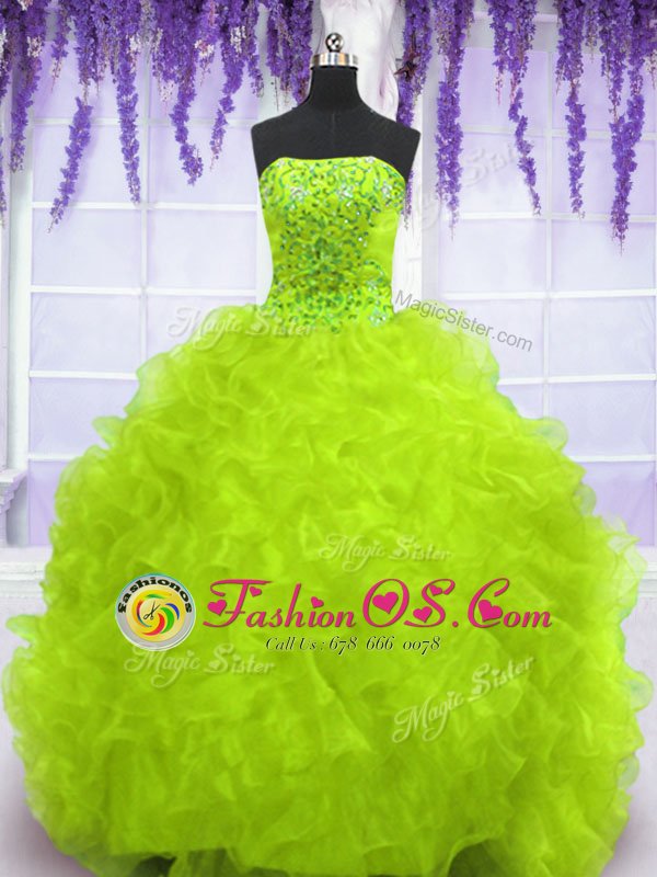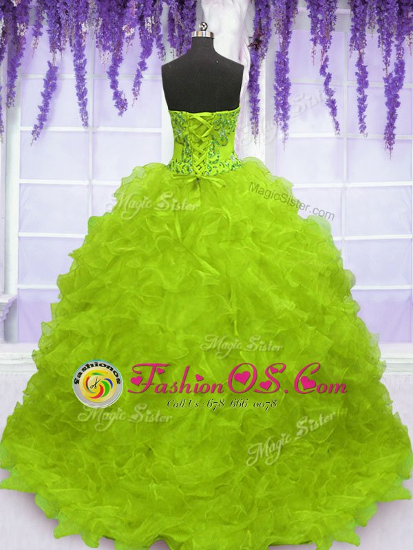 Sweet Organza Sleeveless With Train 15 Quinceanera Dress Brush Train and Beading and Appliques and Ruffles