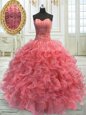 Sleeveless Floor Length Beading and Ruffles Lace Up Vestidos de Quinceanera with Orange Red