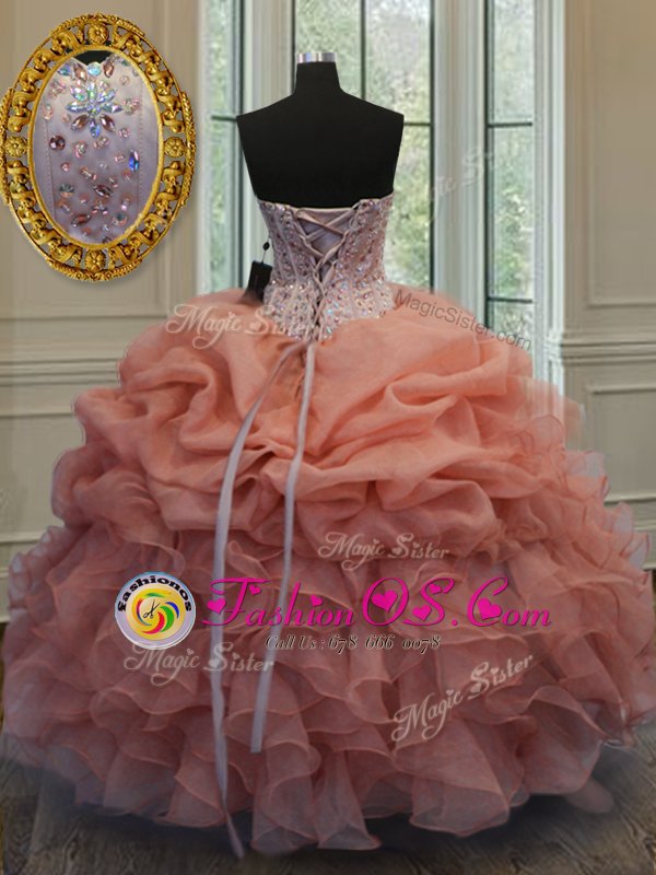 Pick Ups Ball Gowns Quinceanera Gown Orange Red Sweetheart Organza Sleeveless Floor Length Lace Up