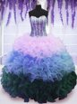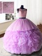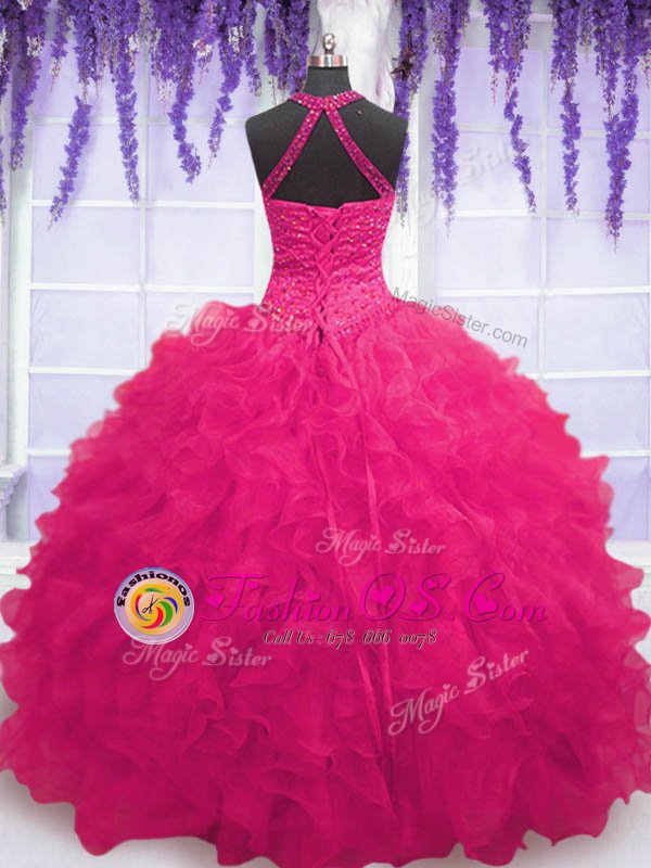 Floor Length Hot Pink Vestidos de Quinceanera High-neck Sleeveless Lace Up
