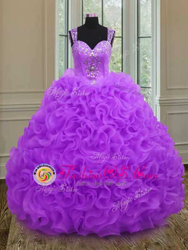 Straps Sleeveless Zipper Floor Length Beading and Ruffles Quinceanera Dresses