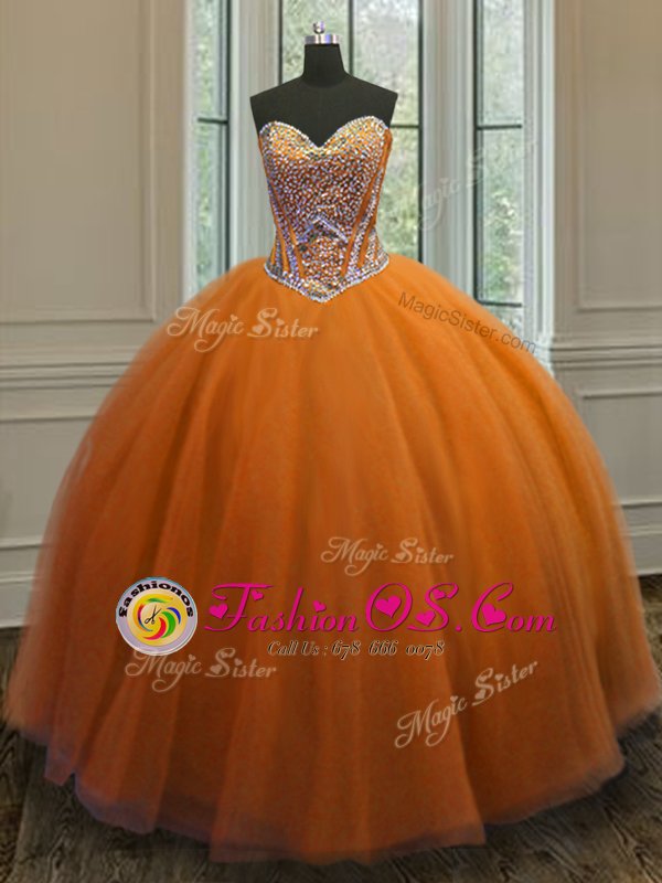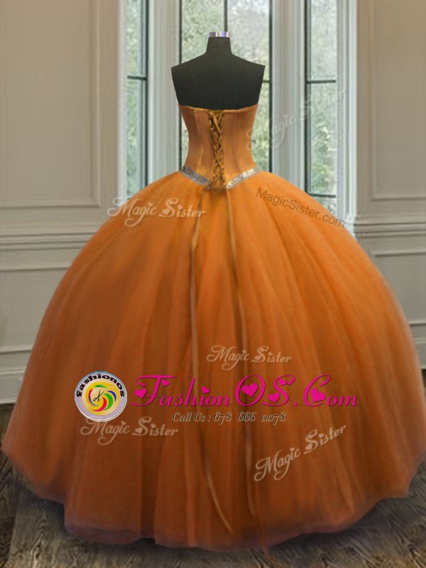 Colorful Orange 15th Birthday Dress Military Ball and Sweet 16 and Quinceanera and For with Beading Sweetheart Sleeveless Lace Up