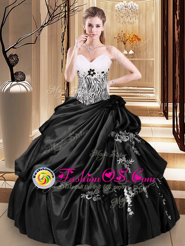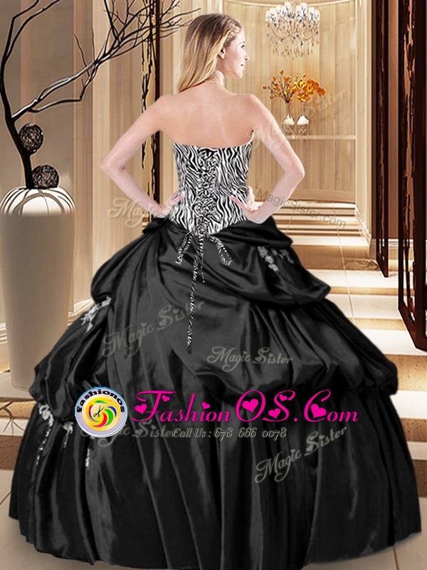 Black Sweetheart Neckline Appliques and Pick Ups Quinceanera Gown Sleeveless Lace Up