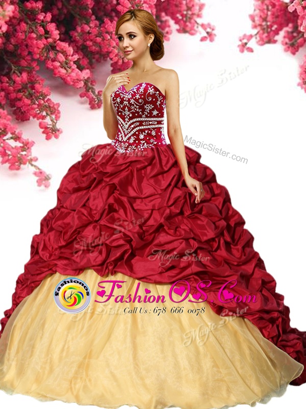 High End Wine Red Sweetheart Lace Up Pick Ups 15 Quinceanera Dress Brush Train Sleeveless