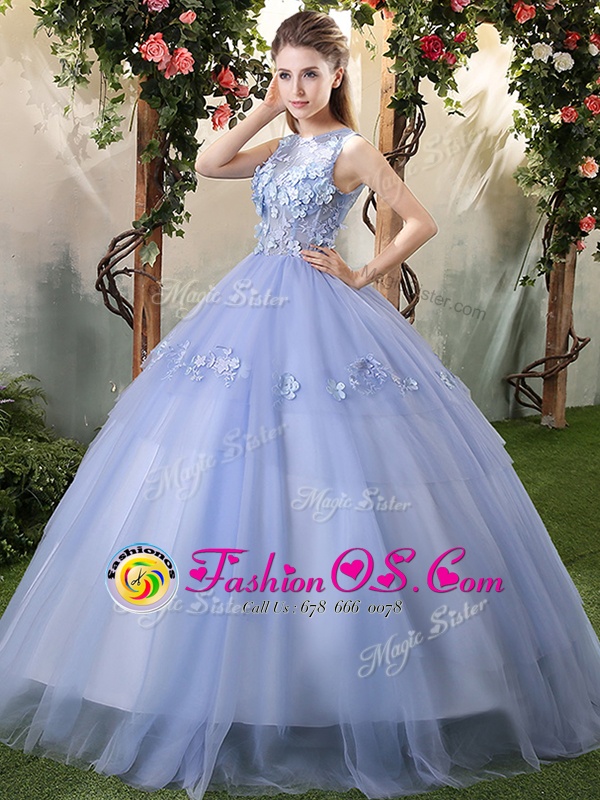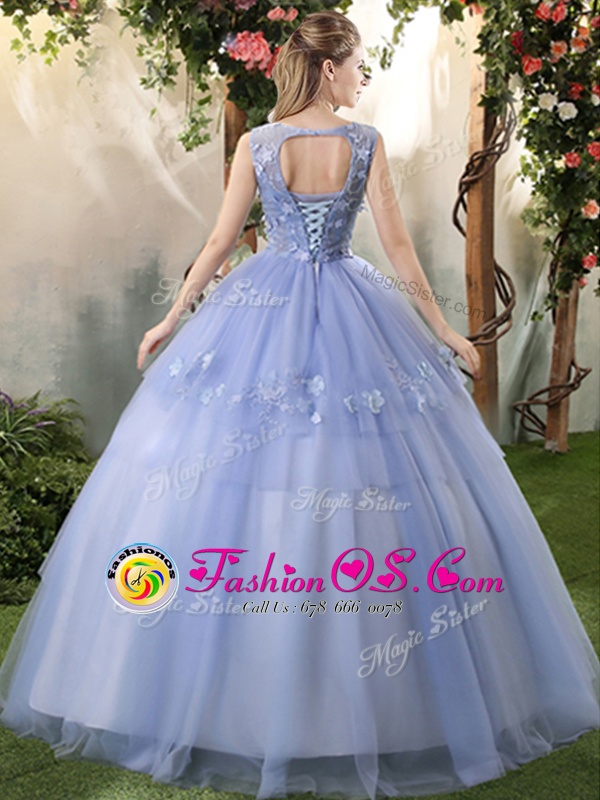 Classical Sleeveless Lace Up Floor Length Lace and Appliques Vestidos de Quinceanera
