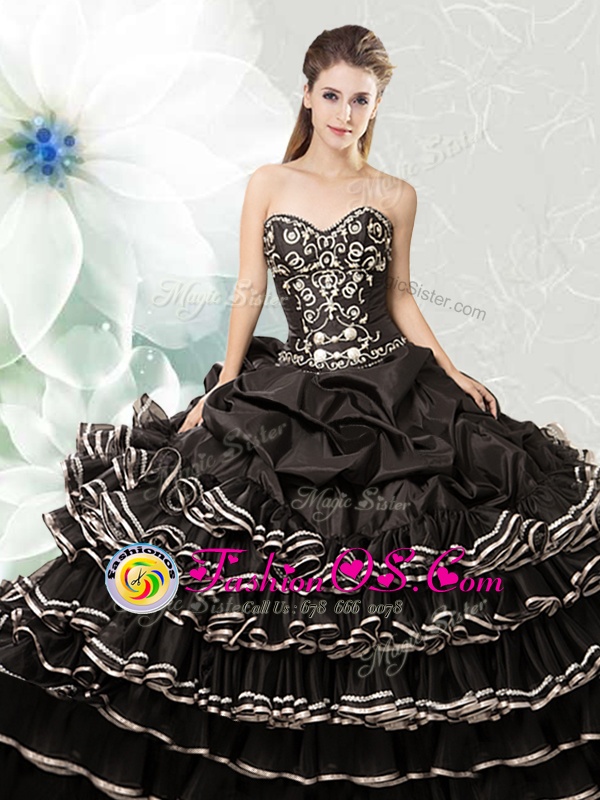 Pick Ups Ruffled Floor Length Ball Gowns Sleeveless Black Sweet 16 Dresses Lace Up