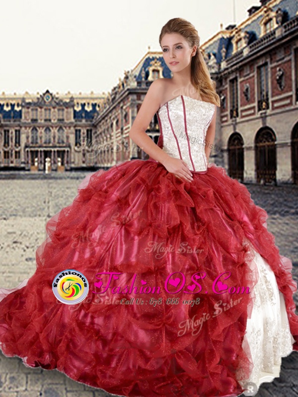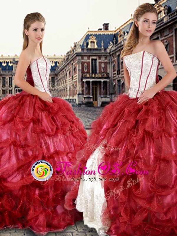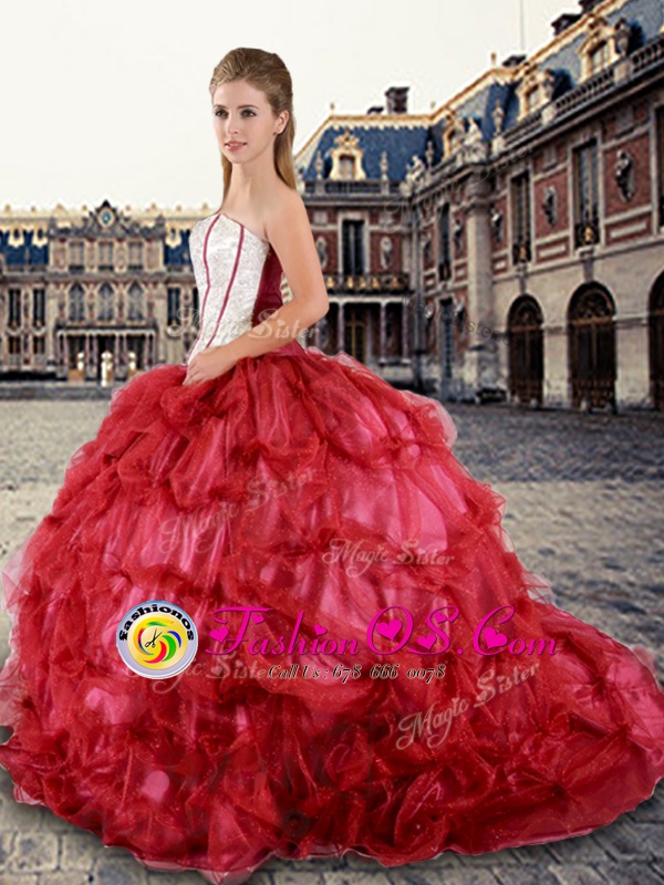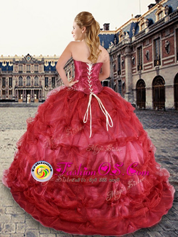 Beauteous Red Tulle Lace Up Quinceanera Dress Sleeveless Floor Length Beading and Pick Ups
