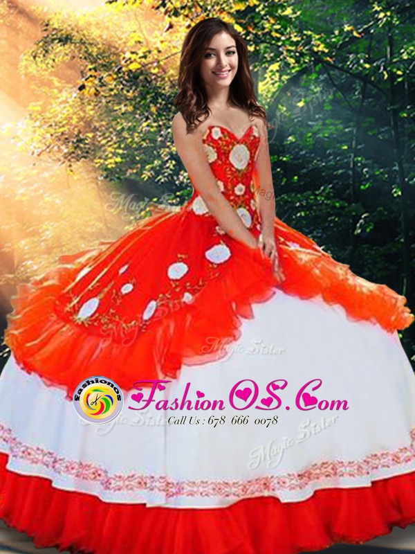 Popular Sweetheart Sleeveless Organza and Taffeta Quinceanera Dresses Embroidery and Ruffles Lace Up