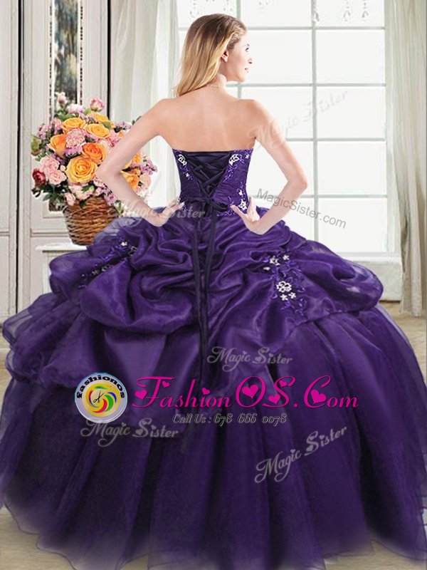 Dynamic Purple Lace Up 15 Quinceanera Dress Appliques and Pick Ups Sleeveless Floor Length