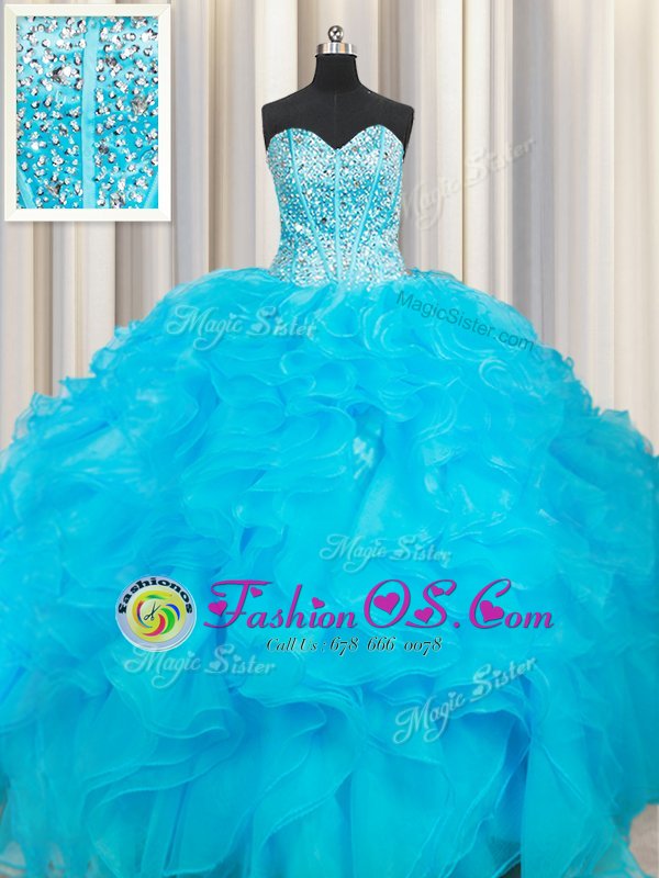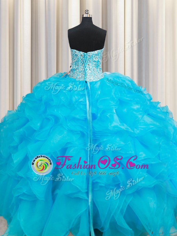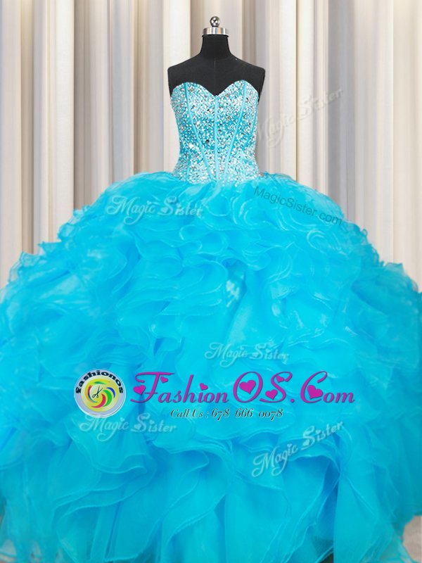 Graceful Baby Blue Sleeveless Organza Lace Up Quince Ball Gowns for Military Ball and Sweet 16 and Quinceanera