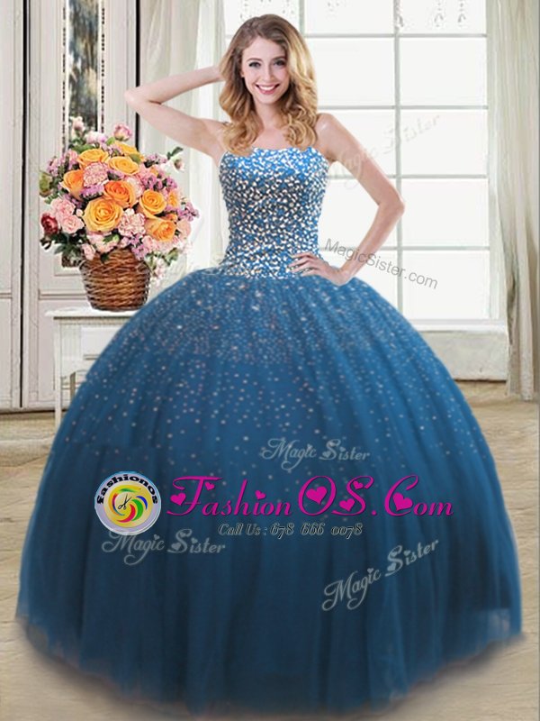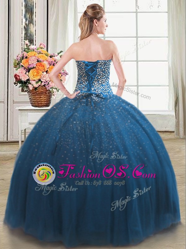 Low Price Teal Sleeveless Floor Length Beading Lace Up 15 Quinceanera Dress