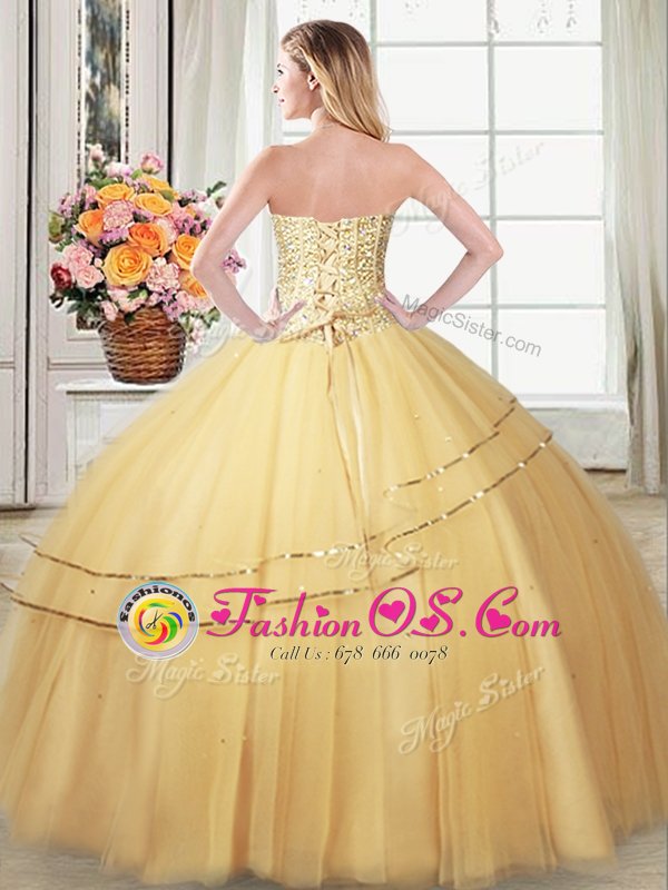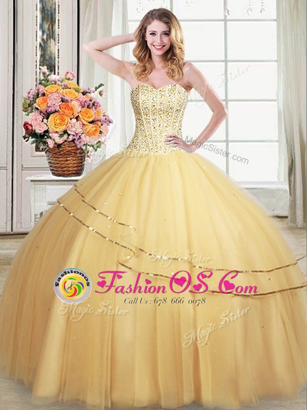 Tulle Sleeveless Floor Length Quinceanera Gown and Beading and Sequins