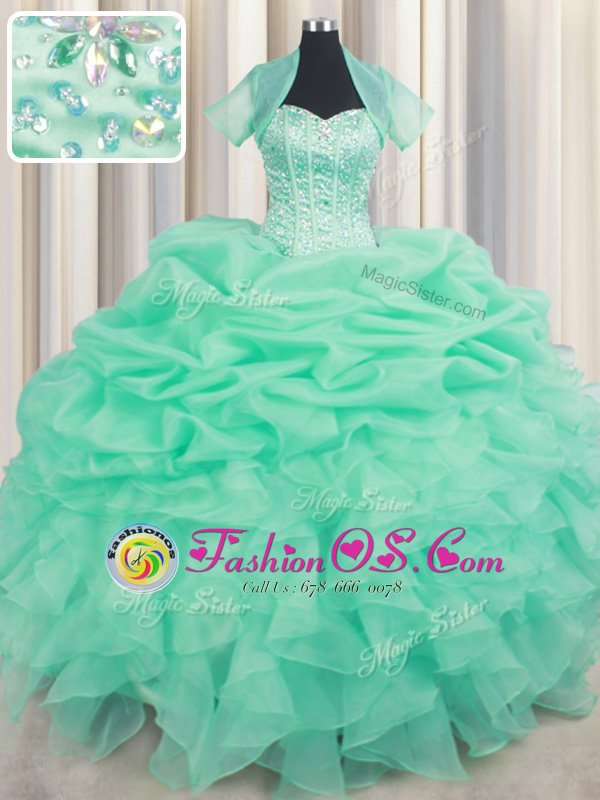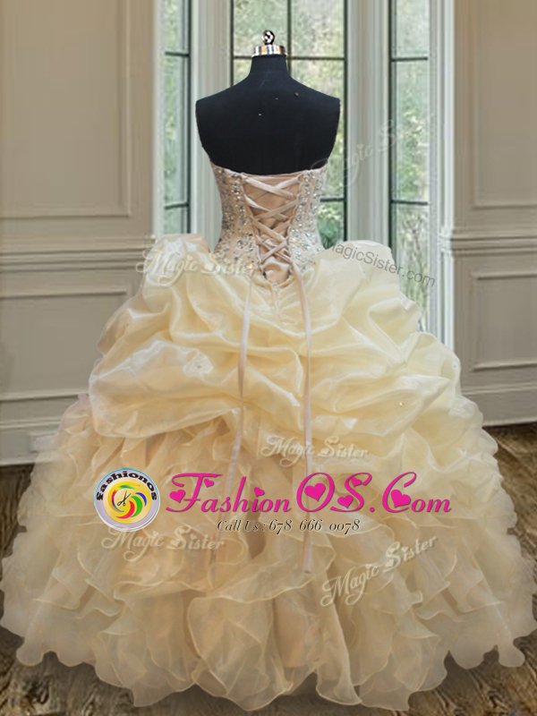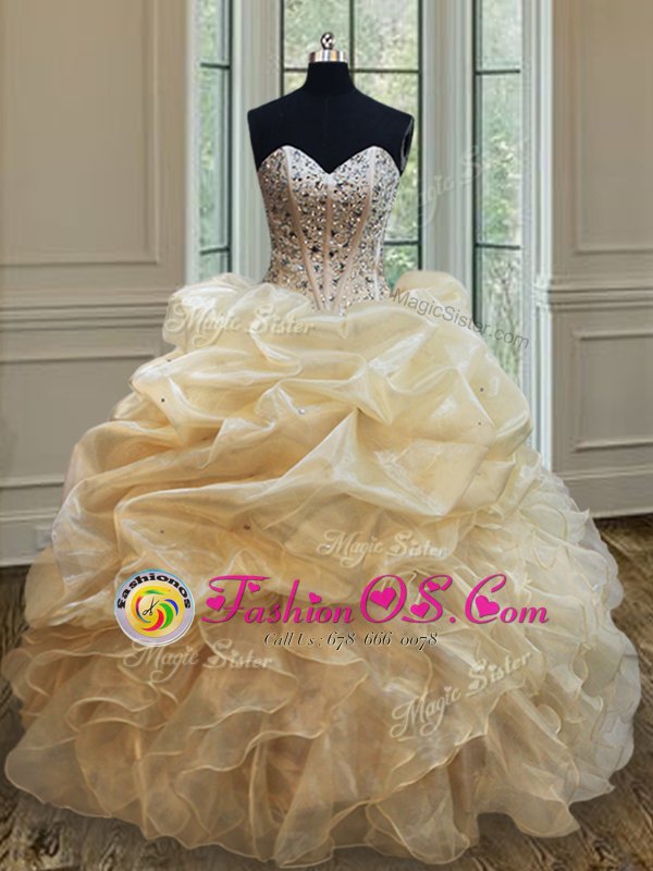Organza Sleeveless Floor Length Quince Ball Gowns and Beading and Ruffles and Pick Ups