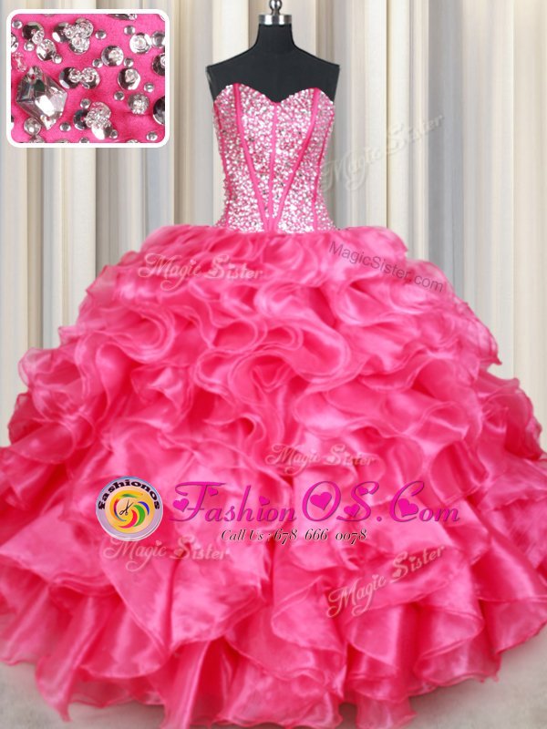 On Sale Organza Sleeveless Floor Length Ball Gown Prom Dress and Beading and Ruffles