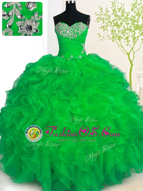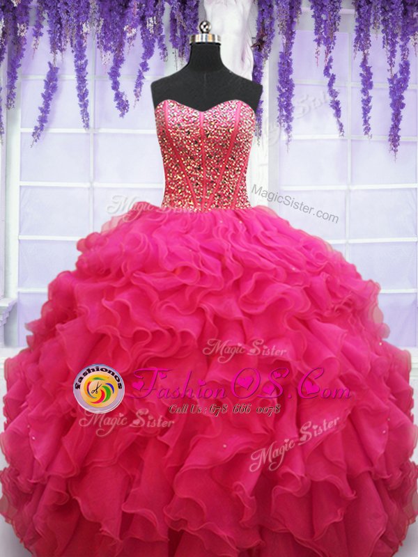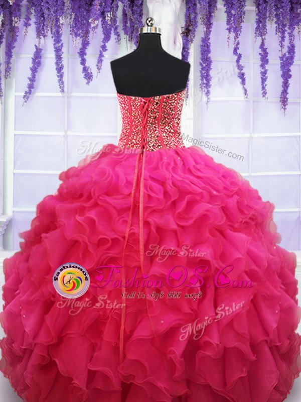 Sleeveless Beading and Ruffles Lace Up Sweet 16 Dress