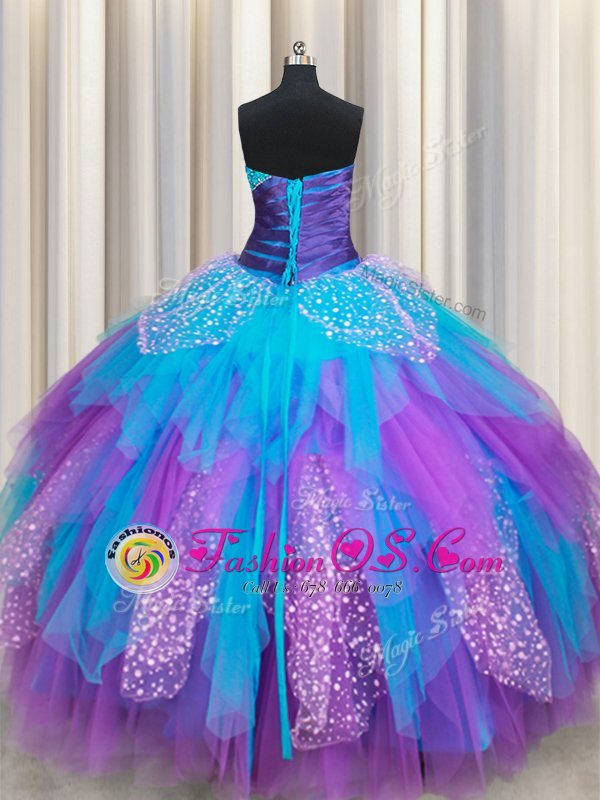 Multi-color Tulle Lace Up Sweetheart Sleeveless Floor Length Quinceanera Gown Beading and Ruffles