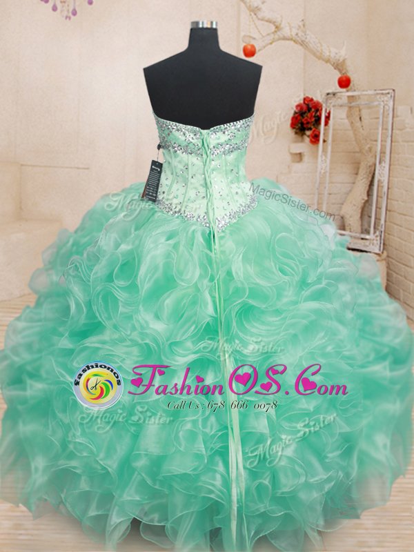 Fashion Aqua Blue Lace Up Sweetheart Beading Sweet 16 Quinceanera Dress Tulle Sleeveless