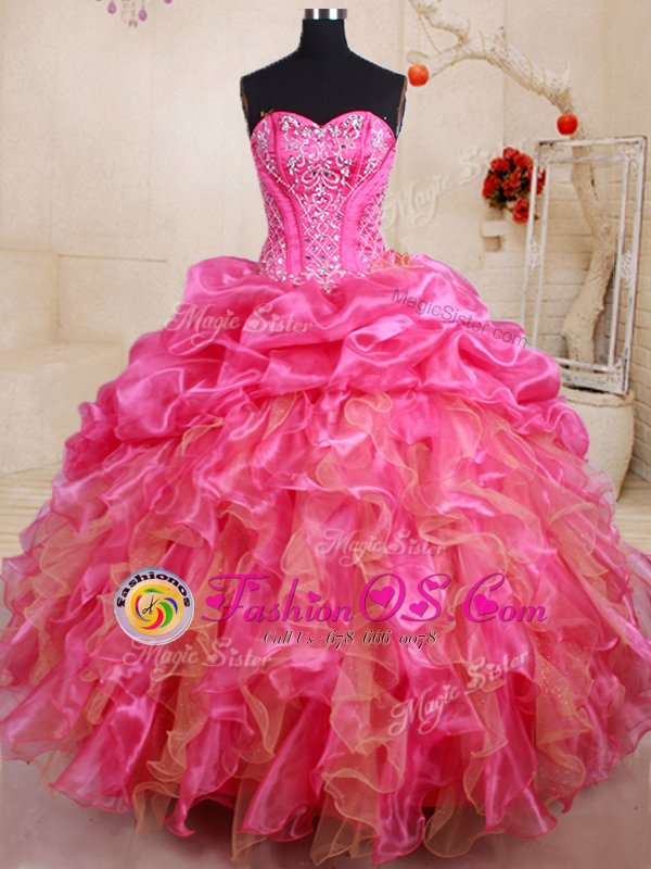 Beading and Ruffles and Pick Ups 15 Quinceanera Dress Hot Pink Lace Up Sleeveless Floor Length