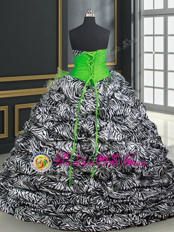 15th Birthday Dress Organza and Printed Brush Train Sleeveless Beading and Ruffles and Pick Ups