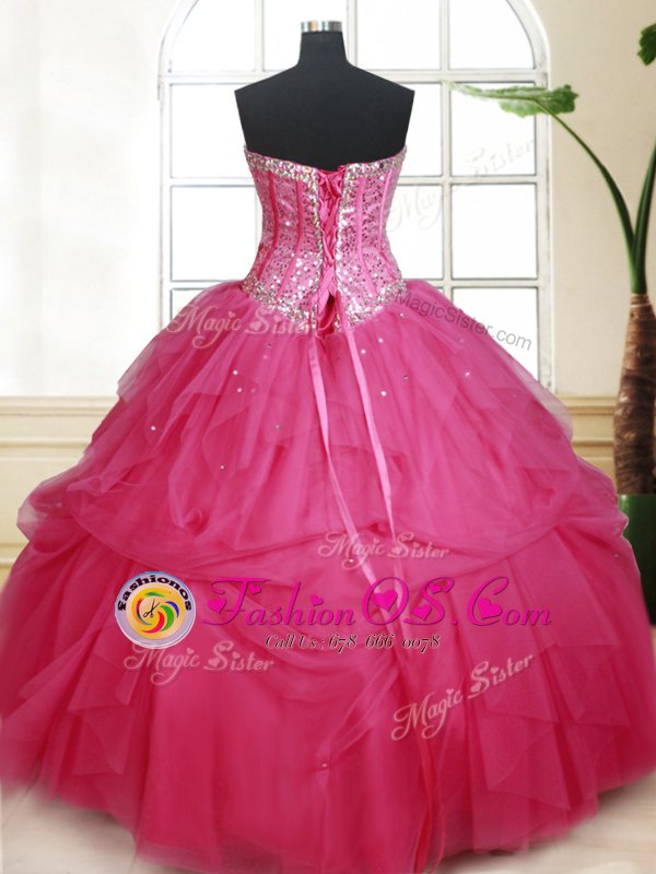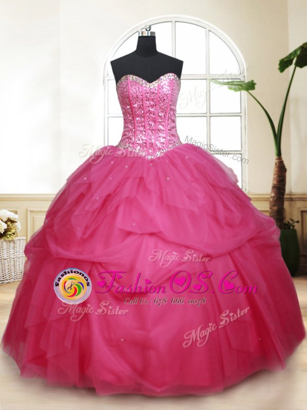 Lovely Sequins Floor Length Ball Gowns Sleeveless Hot Pink 15 Quinceanera Dress Lace Up