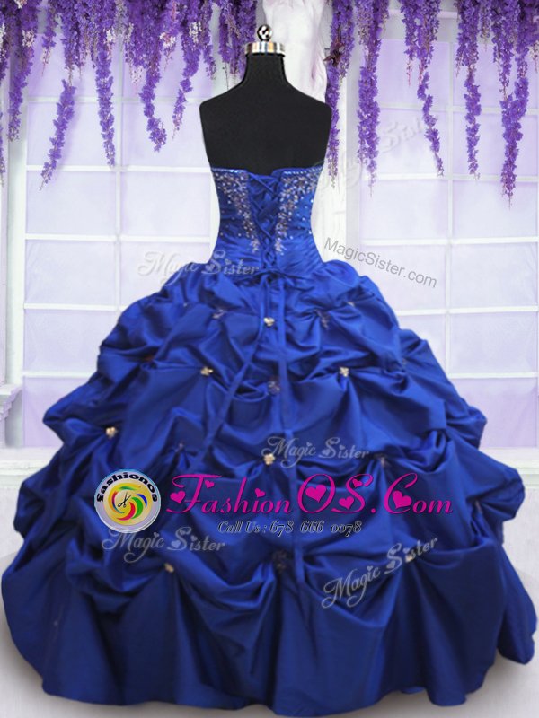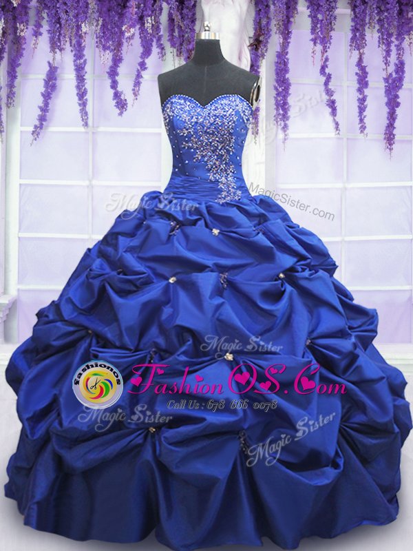 Royal Blue Sleeveless Floor Length Beading and Pick Ups Lace Up Quinceanera Dress