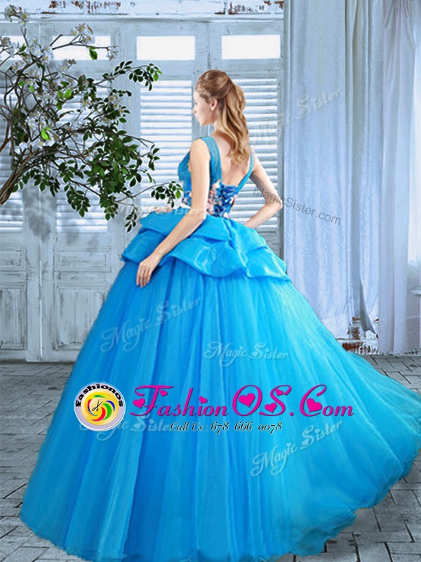 Sumptuous Scoop Blue Sleeveless Organza Lace Up 15th Birthday Dress for Prom