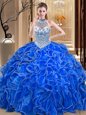 Low Price Red Tulle Lace Up Sweet 16 Quinceanera Dress Sleeveless Floor Length Beading and Embroidery