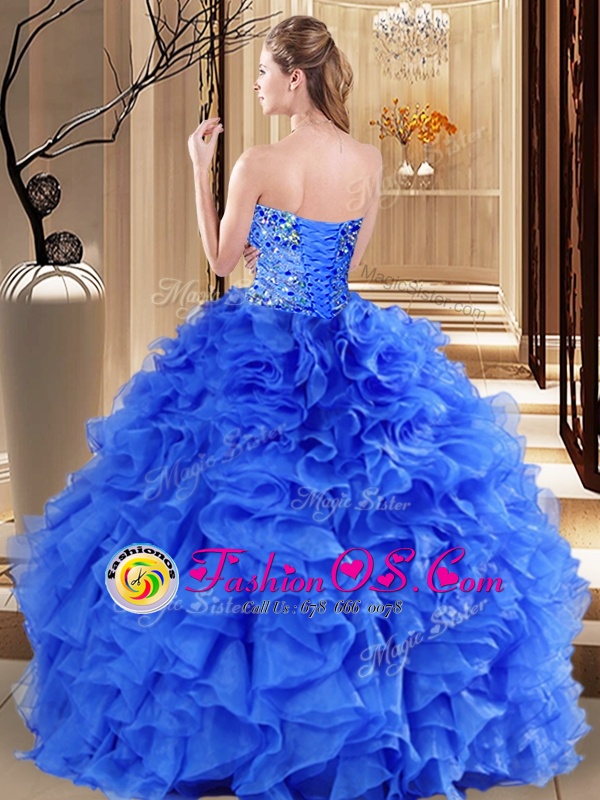 Decent Organza Sweetheart Sleeveless Lace Up Beading and Ruffles Quinceanera Dresses in Red