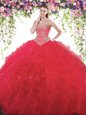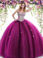 Floor Length Lace Up Quinceanera Gowns Hot Pink and In for Military Ball and Sweet 16 and Quinceanera with Beading and Ruffles