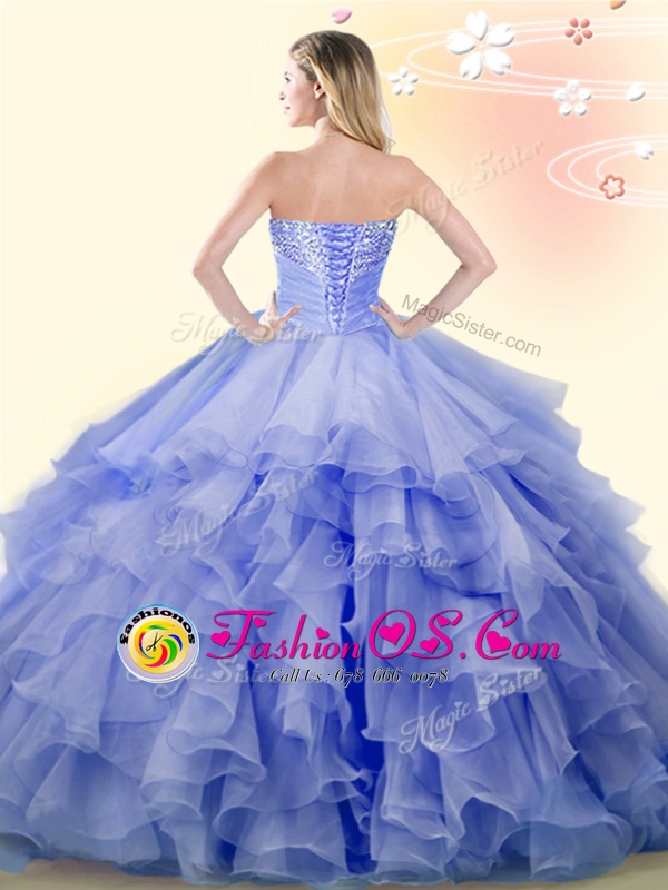 Baby Blue Sleeveless Beading and Ruffles Floor Length Quince Ball Gowns