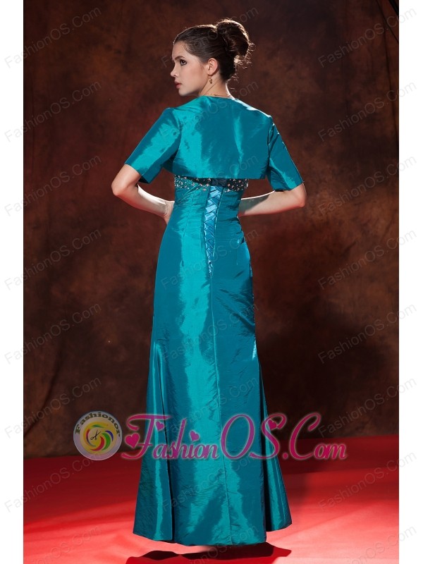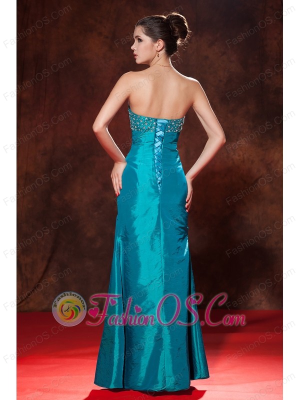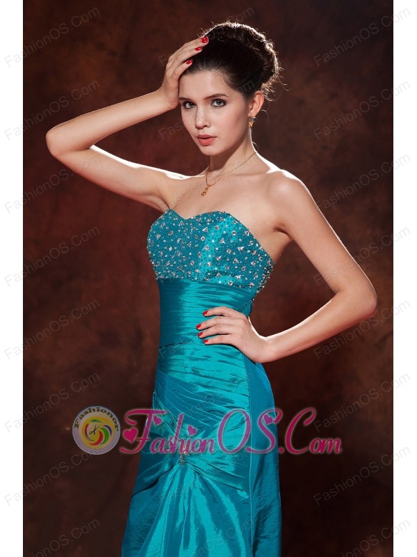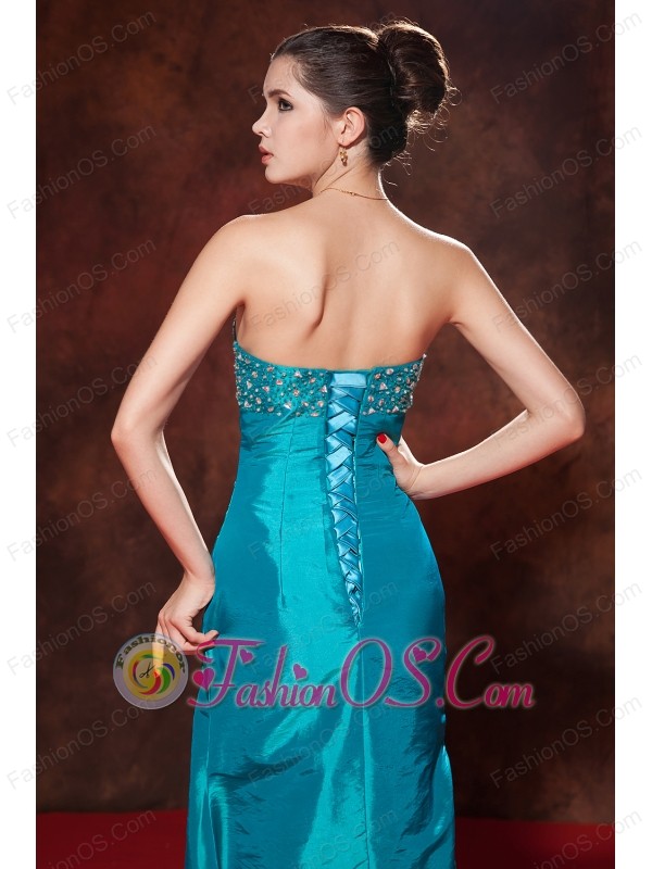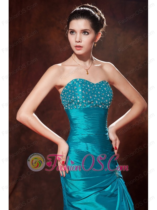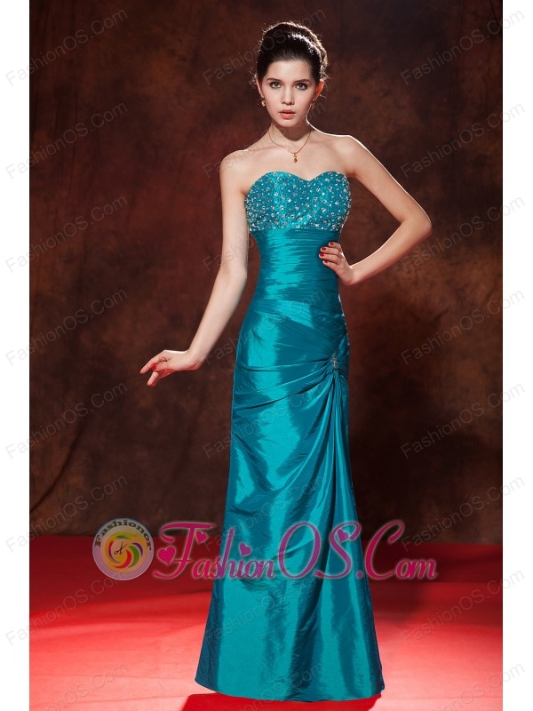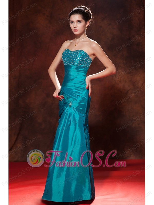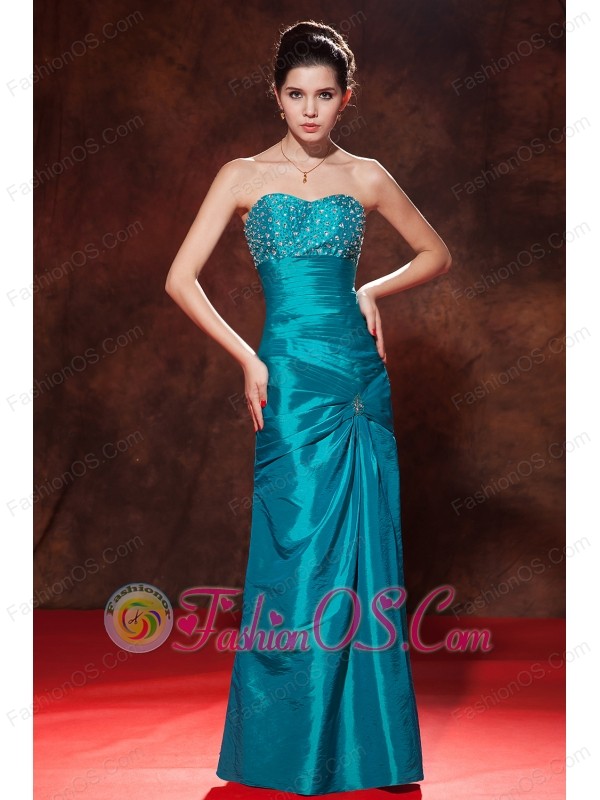 Discount Teal Column / Sheath Sweetheart Beading Prom Dress Floor-length Taffeta