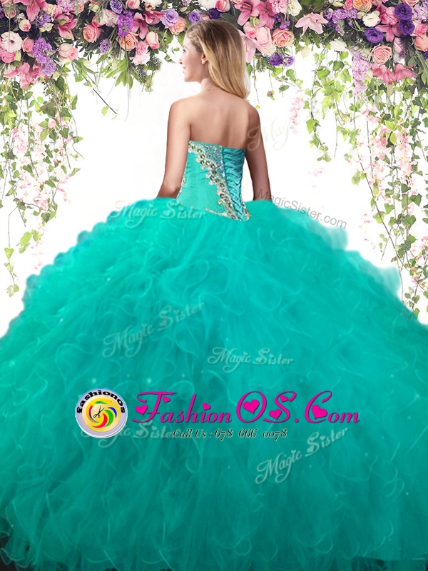 Beading Quince Ball Gowns Turquoise Lace Up Sleeveless Floor Length