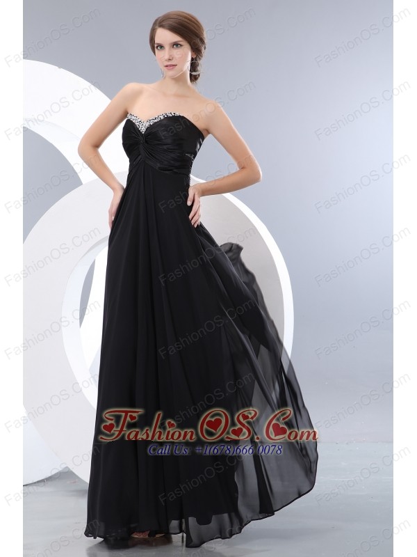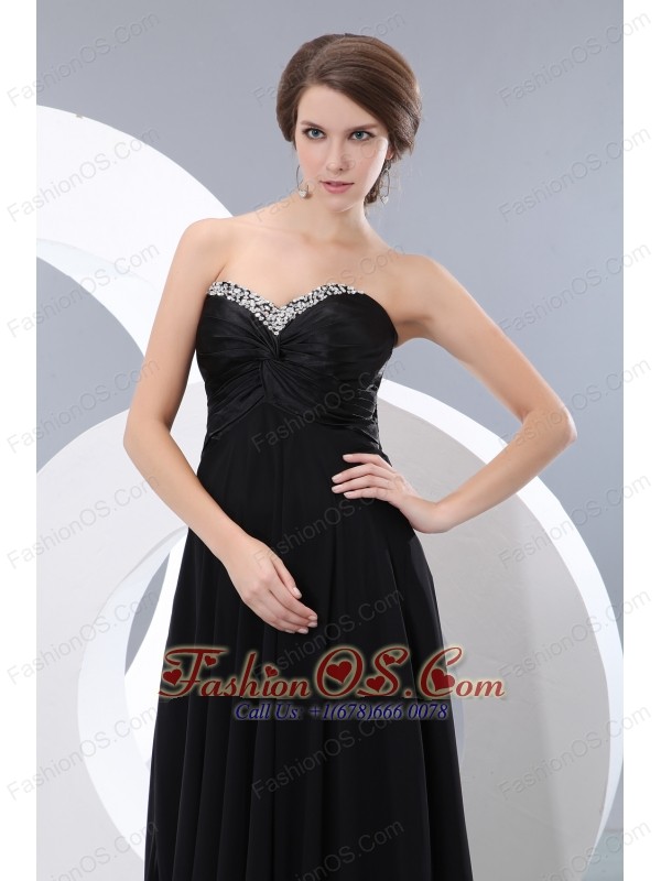 Cheap Black Empire Prom / Evening Dress Beading Sweetheart Floor-length Chiffon