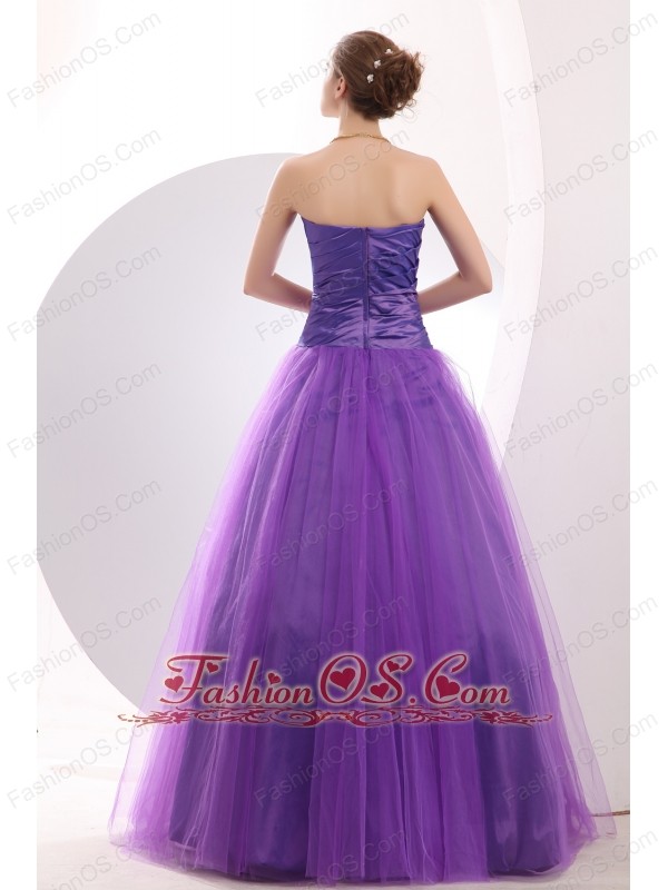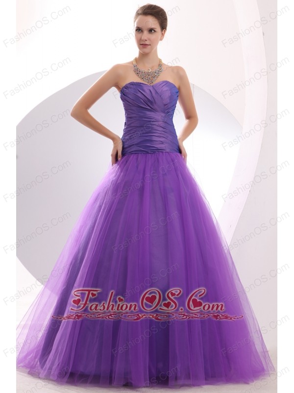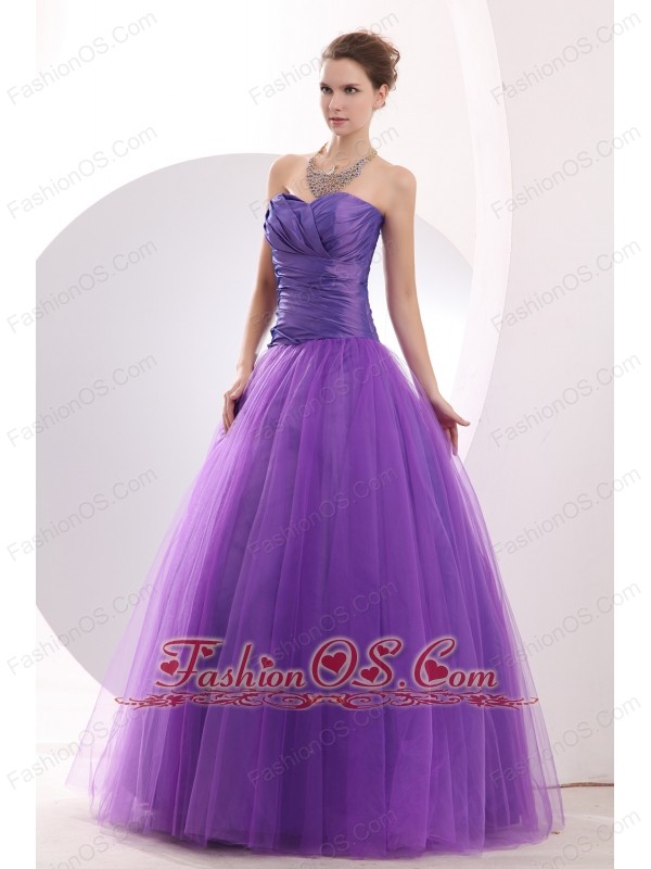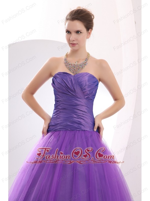 Cheap Purple Prom / Evening Dress Ruch A-line Sweetheart Floor-length Tulle