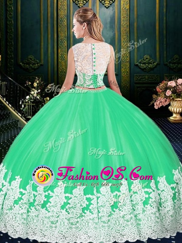 Scoop Floor Length Zipper Quinceanera Gown Fuchsia and In for Military Ball and Sweet 16 and Quinceanera with Lace and Appliques