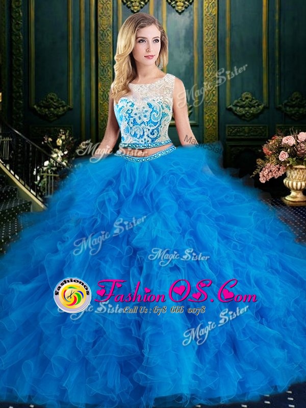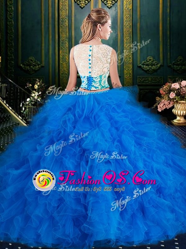 Custom Made Scoop Sleeveless Zipper Quinceanera Dress Blue Tulle