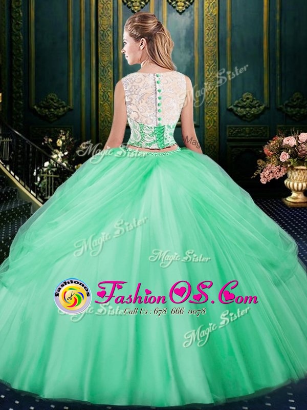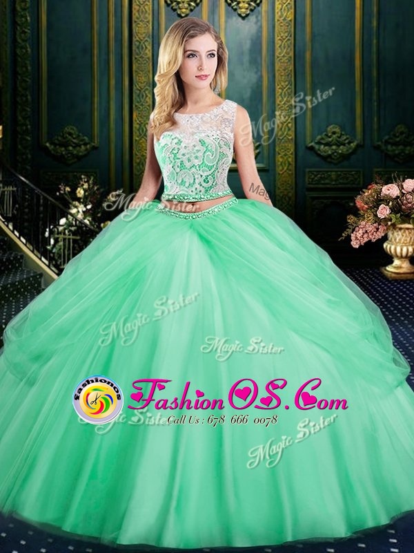Best Scoop Pick Ups Floor Length Two Pieces Sleeveless Apple Green Quinceanera Dresses Zipper