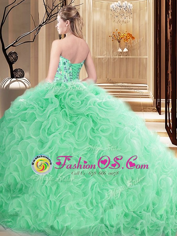 Traditional Organza and Fabric With Rolling Flowers Sleeveless 15 Quinceanera Dress Court Train and Embroidery and Ruffles