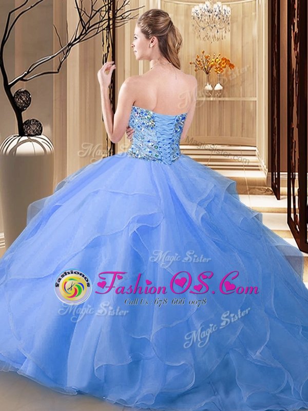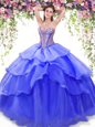Glamorous Peach Lace Up Sweetheart Beading Quinceanera Dress Tulle Sleeveless