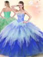 Modern Royal Blue Lace Up Sweetheart Beading and Appliques Quinceanera Dress Tulle Sleeveless