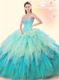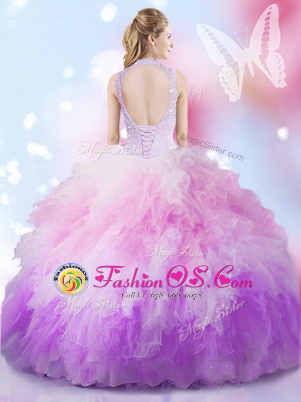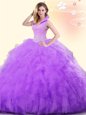 Discount Floor Length Lace Up Quinceanera Gowns Lilac and In for Military Ball and Sweet 16 and Quinceanera with Beading