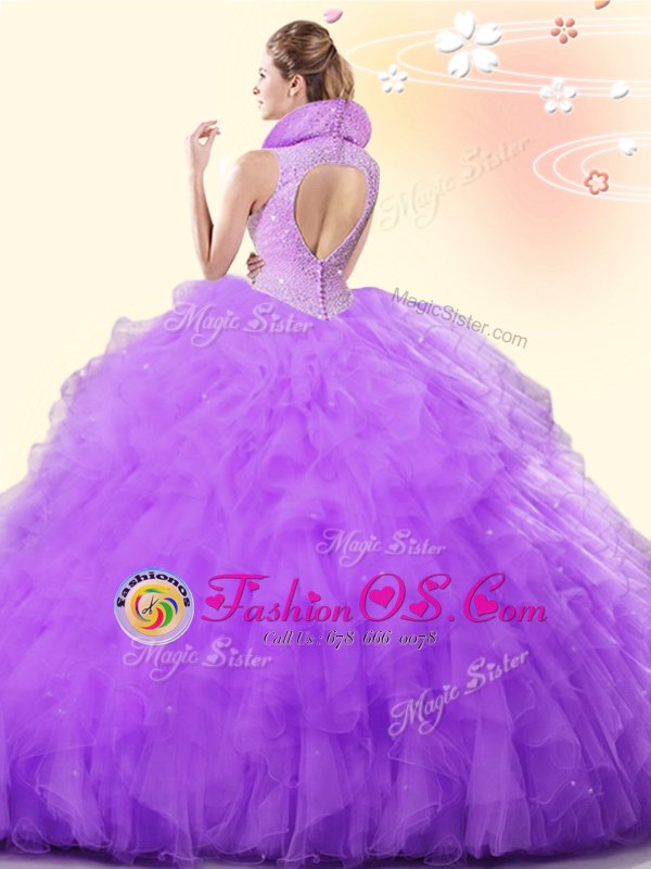 Unique Yellow Backless Sweet 16 Dresses Beading and Ruffles Sleeveless Floor Length