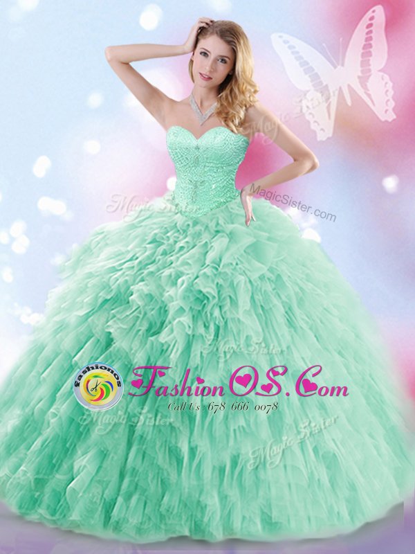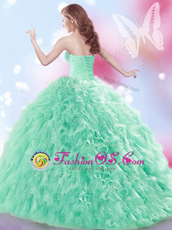 Super Apple Green Sleeveless With Train Beading and Ruffles Lace Up Quinceanera Dress