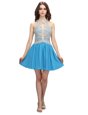 Dynamic Sequins Mini Length White Homecoming Dress Scoop Cap Sleeves Backless
